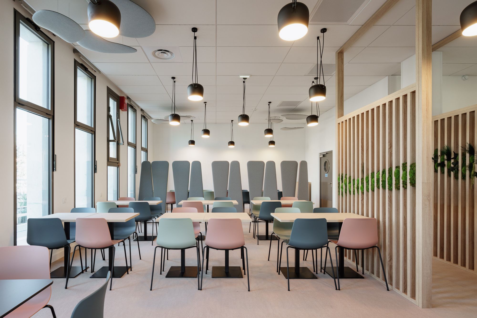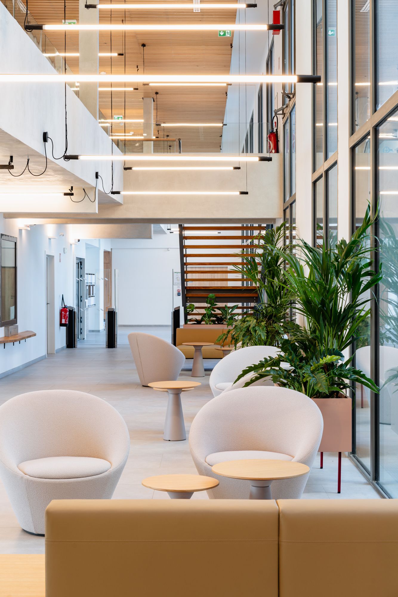• Des espaces de vie et de communication (hall, restauration d'entreprise, showroom, salle de détente, place du village)
