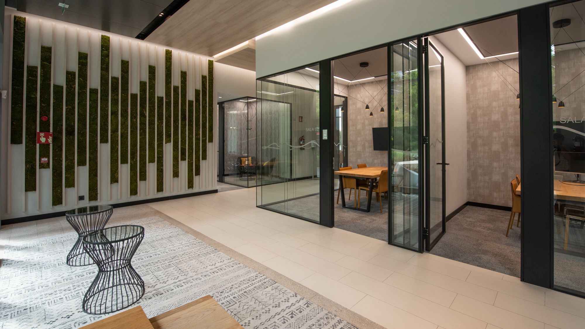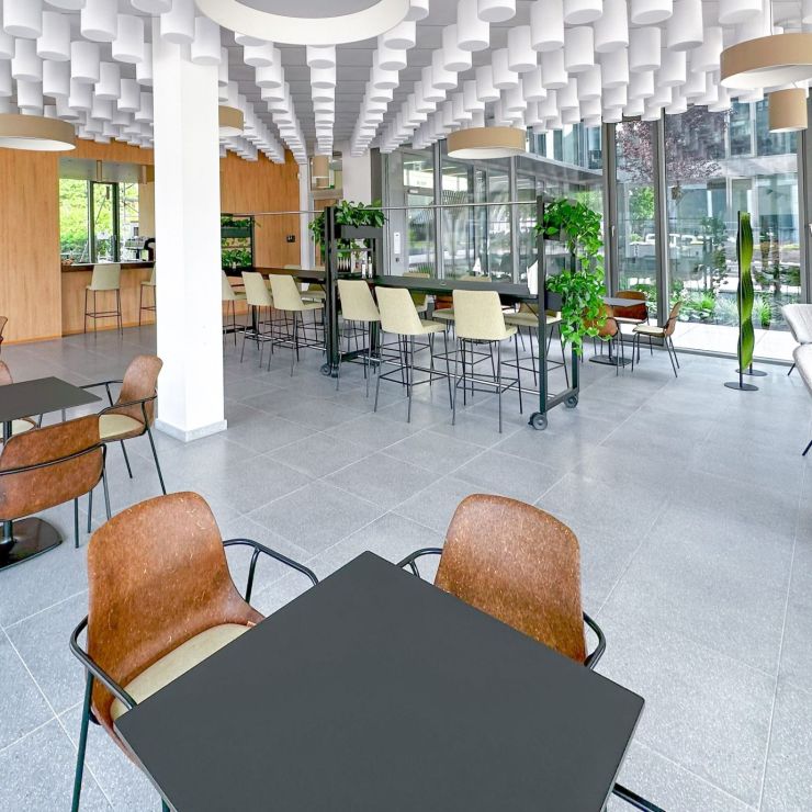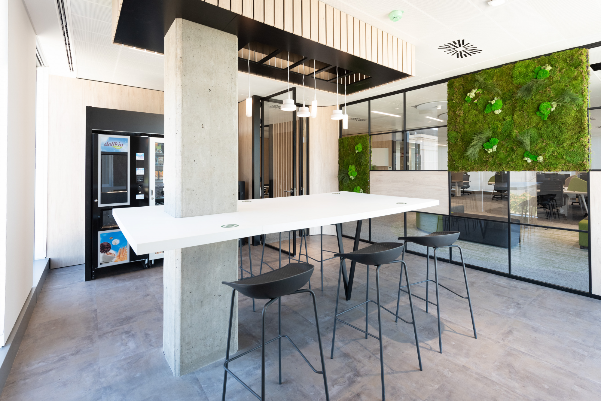In addition to the spacious and bright workspaces, the new headquarters features collaboration rooms inspired by comfortable, natural and home-like environments, transforming the office into a calm, inspiring and healthy environment. Contributing to this are spaces such as "the agora" with a large work table under a "tree" in the middle of the office, freeze-dried plants, the work cafeteria and restaurant, which is also open to the community, and the wellness area (medical and nursing spaces). Other dynamic environments, such as lounges, telephone booths, meeting rooms, training and auditorium, are also accessible to the community. Materials, such as wood, earth tones and green vegetation, have played an essential role in the project, making the headquarters a unique and innovative working environment.