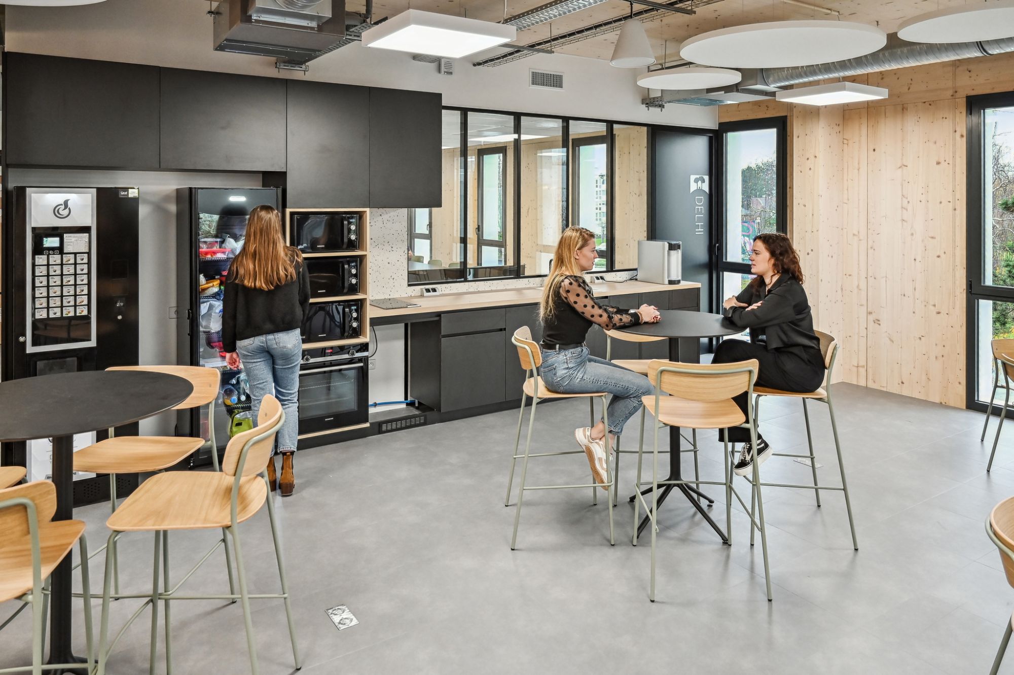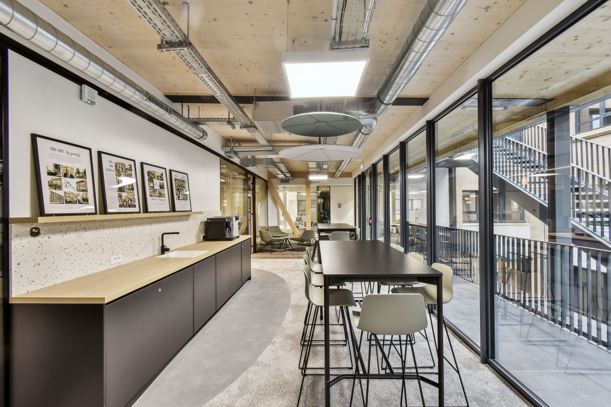 Les trois plateaux sont tournés vers l’extérieur avec quatre terrasses accessibles à l’ensemble des collaborateurs, dont une dans le prolongement du workcafé, espace chaleureux dans lequel les collaborateurs peuvent se retrouver à toute heure de la journée.