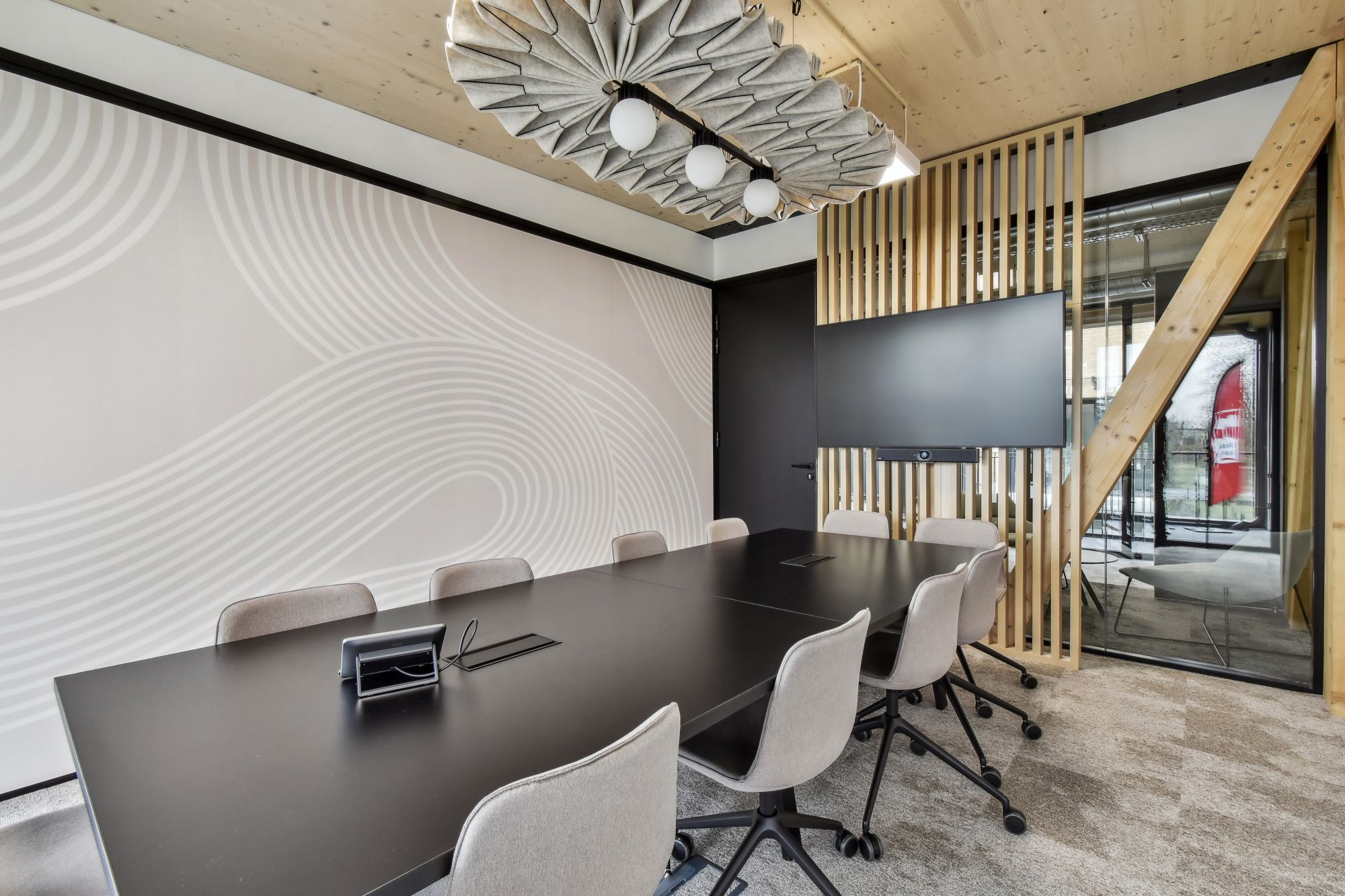 “Nos architectes d'intérieur ont travaillé des jeux de formes avec les éléments architecturaux pour donner du dynamisme à l’ensemble, notamment avec le calepinage des moquettes, des jeux de peinture répondant aux menuiseries extérieures et des revêtements muraux graphiques.“